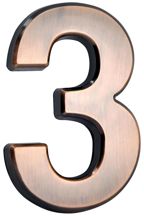Číslo MagicHome ´3´, domové, s lepiacou páskou, bronzové, 70x100 mm, ABS