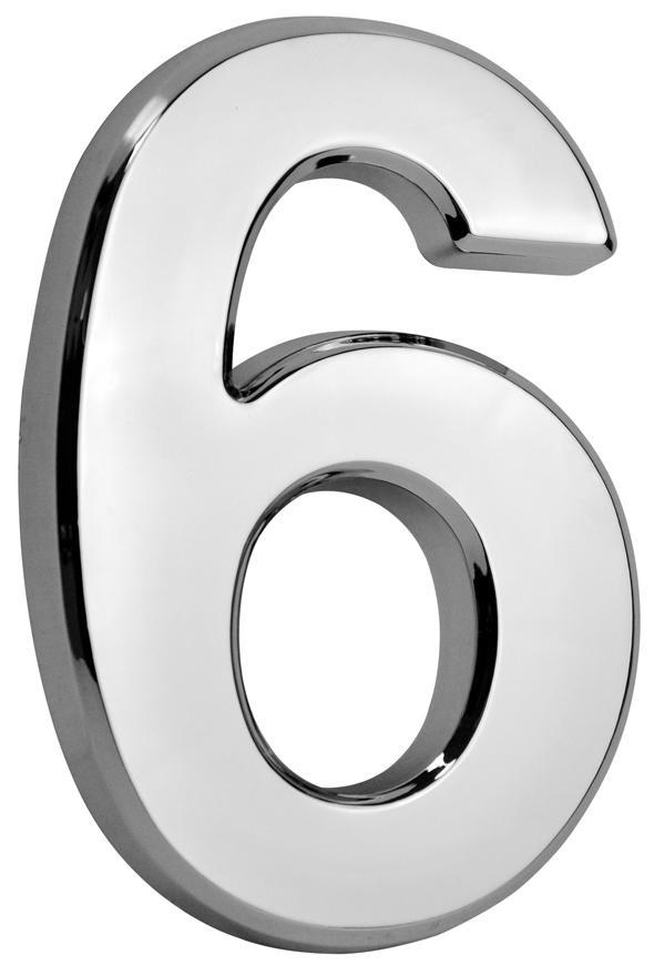 Číslo MagicHome ´6´, domové, s lepiacou páskou, strieborné, 70x100 mm, ABS