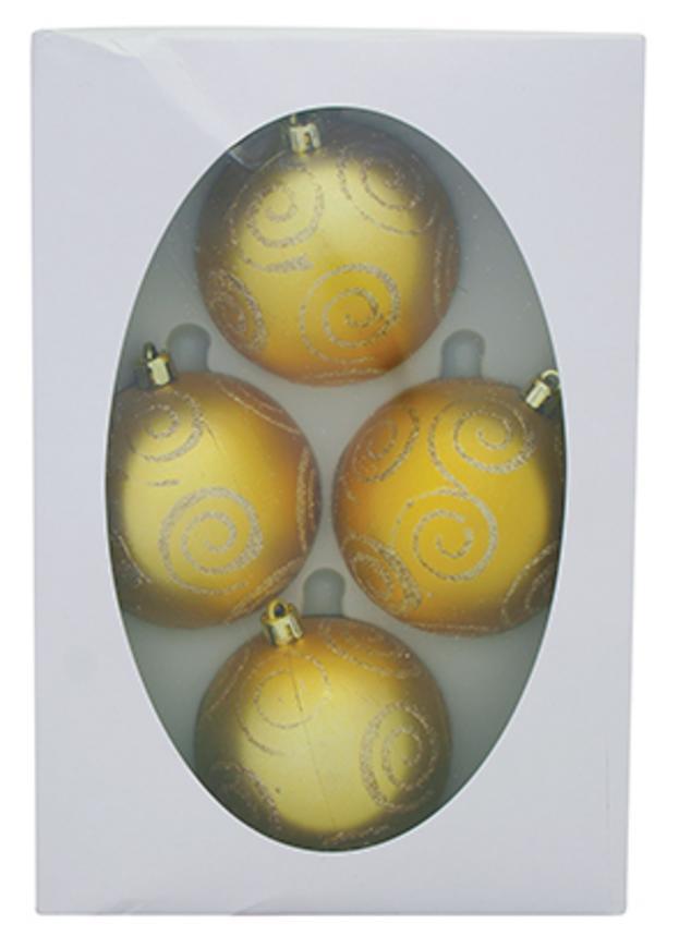 Gule MagicHome Vianoce, 4 ks, zlaté s ornamentami, 7 cm