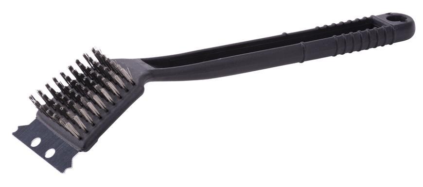 Kefa na čistenie grilu vám uľahčí odstránenie prischnutej špiny a zvyškov jedla z grilovacieho roštu. Na očistenie hrubej špiny slúži škrabka v prednej časti. Dodatočné nečistoty sa následne odstránia kefou. Štetiny kefy sú vyrobené tak, aby nepoškriabali a neznehodnostili grilovací rošt. Na konci dlhej rúčky je malý otvor pre možnosť zavesenia.