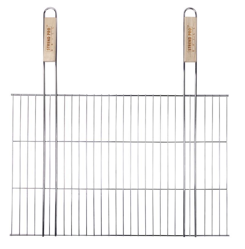 Drôtený rošt slúži pre grilovanie. Hlavná grilovacia časť má rozmery 380 x 580 mm a je vyrobená z drôtu hrubého 620 mm. Na hranatú časť roštu sa napájajú rúčky pre jeho premiestňovanie, ktoré sú pokryté svetlejším drevom. Drevo na koncoch zabezpečuje potrebnú izoláciu pred teplotou kovových častí. Jednotlivé drôty v rošte sú v užšom rozostupe, čím sa nemusíte báť, že Vám pripravované jedlo spadne pomedzi ne do uhlia. Celá kovová konštrukcia je pochrómovaná a odolná voči vysokým teplotám.