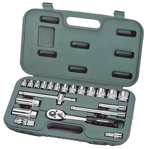 OBSAH BALENIE: Hlavice: 3/8" 6 8 10 11 12 13 14 15 17 19 21 22 24 mm Kardaň univerzálny: 3/8" Klúč na sviečku: 16 21 mm Vrátidlo: 3/8" Nadstavce: 3/8"" 45 75 125 mm Račna: 3/8"