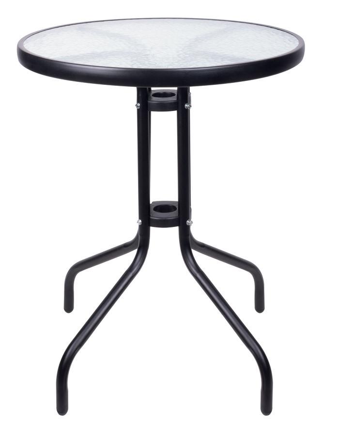 Stôl je vhodný pre umiestnenie na balkóny alebo terasy. Je menších rozmerov, čím nezaberá veľa miesta. Spodná časť stola je vyrobená z kovu s rozmermi 22 x 1 mm. Vrchná plocha je pokrytá priehľadným tvrdeným sklom, s hrúbkou 5 mm. Celý stôl je v odtieňoch hnedej farby. Výška stola je 70 cm a priemer užívateľskej plochy je 60 cm. Stôl nevyžaduje špeciálne ošetrenie. Je vhodné ho umiestniť na rovný a tvrdší povrch.