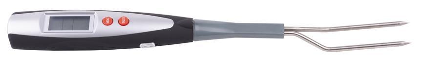 Digitálny teplomer je skvelým pomocníkom pri každej grilovačke. Slúži pre kontrolu teploty mäsa, napríklad na steaky či hamburgre. Rukoväť teplomera je plastová a nachádza sa na nej malý displej, na ktorom sa Vám zobrazí teplota mäsa. Pred použitím je potrebné skontrolovať baterky a zapnúť ho tlačidlom. Potom zapichnete dve spodné ihlice do mäsa a už len počkáte, kým vám teplomer odmerá aktuálnu teplotu vášho pripravovaného mäsa.