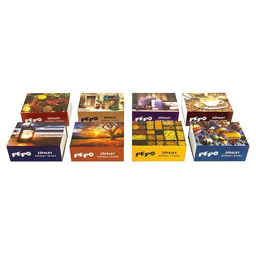 PE-PO zápalky v 8 rôznych krabičkách, 55mm, v balení 100 ks.